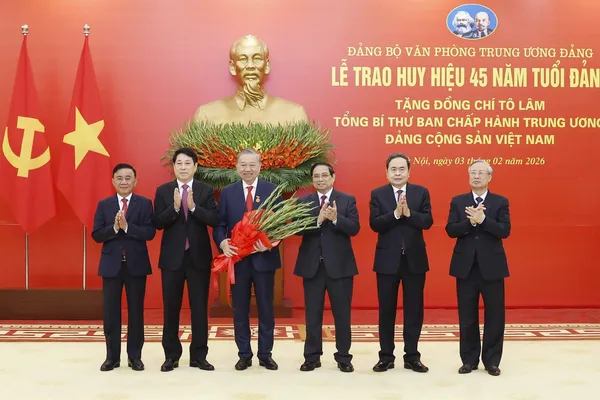 하노이(Hà Nội)에서 당 중앙사무처가 당 창립 96주년을 맞아 당 서기장 또럼(Tô Lâm)에게 당원 45년 배지를 수여했다.