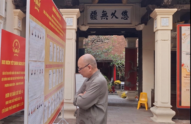 하노이(Hà Nội) 옛 거리 호안끼엠(Hoàn Kiếm) 일대의 사당과 마당 등 역사 유적지에 2026년 16대 국회(국회의원) 및 지방의회 선거 유권자 명부와 후보 정보가 게시되었다.